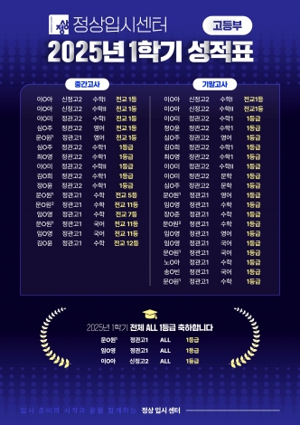 [정상입시센터] 2025년 1학기 고등부 성적표