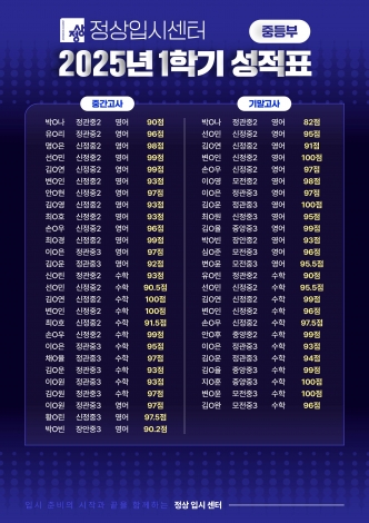 [정상입시센터] 2025년 1학기 중등부 성적표